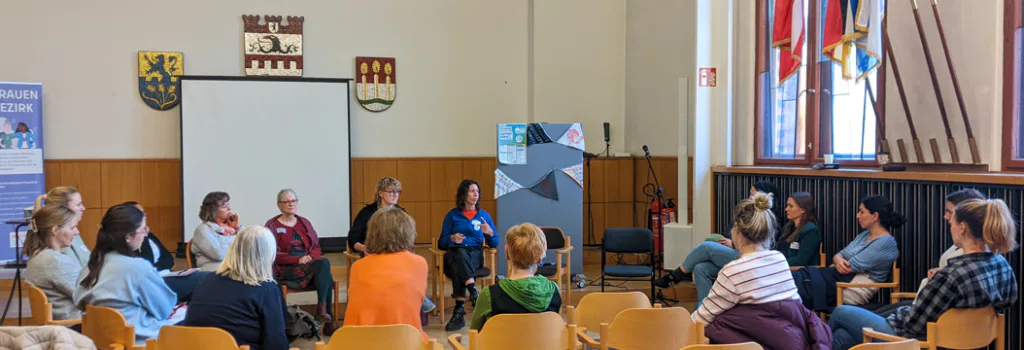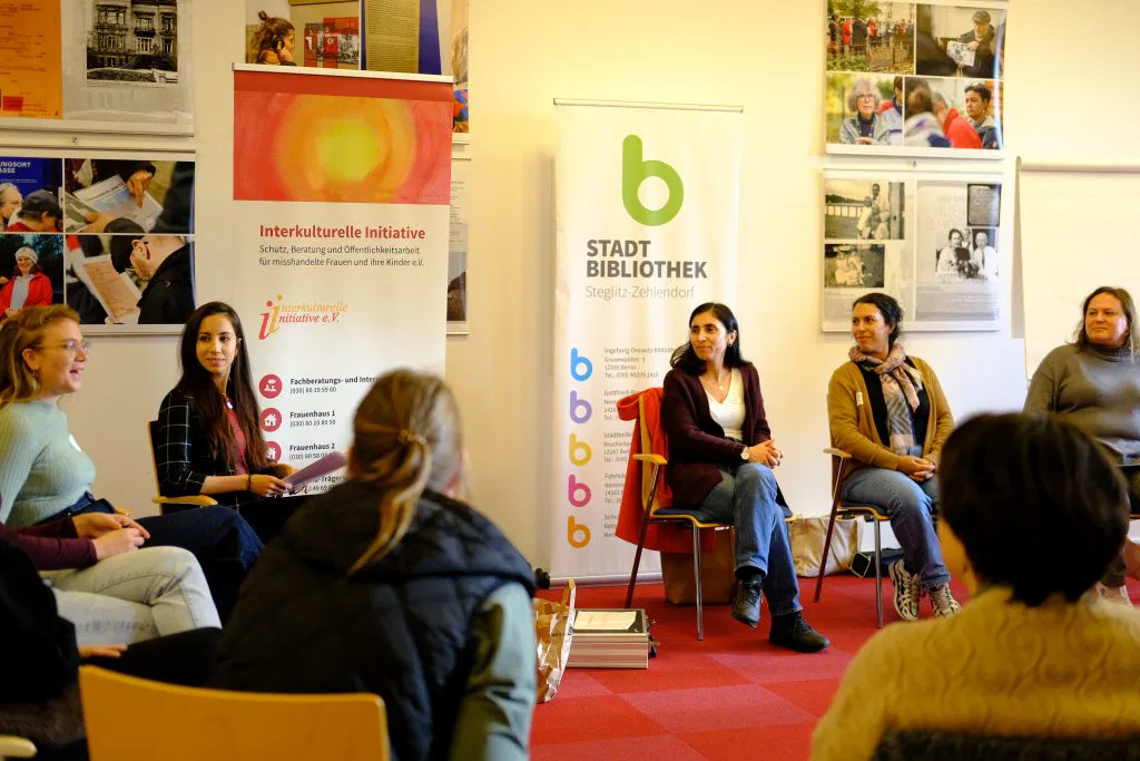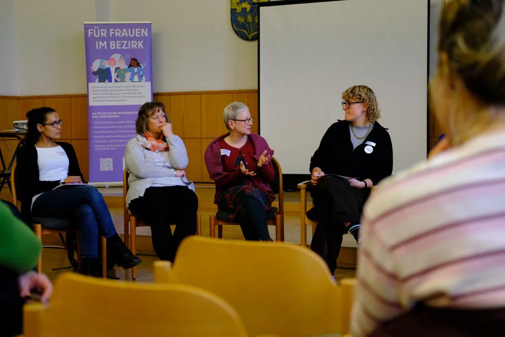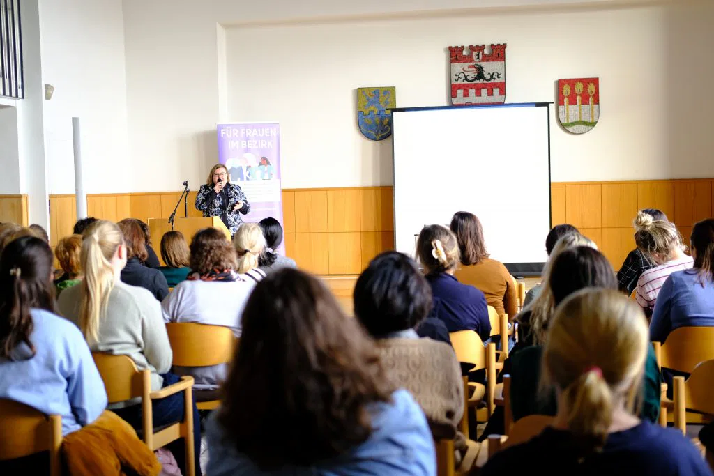 Die Beraterinnen der Interkulturellen Initiative, Fachberatungsstelle gegen häusliche Gewalt, zeigten in ihrem Workshop, wie sie Schutzkonzepte praktisch umsetzen und gewaltbetroffene Frauen beraten und begleiten. Mit ihrer fundierten Expertise und ihrem Versorgungsauftrag im Gewaltschutz leisten sie unverzichtbare Arbeit – ihr Engagement macht deutlich, wie entscheidend sie für den Schutz und die Unterstützung betroffener Frauen im Bezirk sind.
