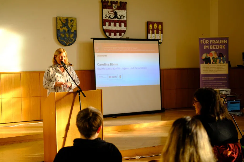 Beim Fachtag machten Carolina Böhm, Bezirksstadträtin für Jugend und Gesundheit, und Laura Stradt, Geschäftsführerin des Diakonischen Werks Steglitz und Teltow-Zehlendorf e.V. , deutlich, wie entscheidend die enge Zusammenarbeit aller Beteiligten und wie wichtig ein starkes Netzwerk für den Schutz Betroffener ist.